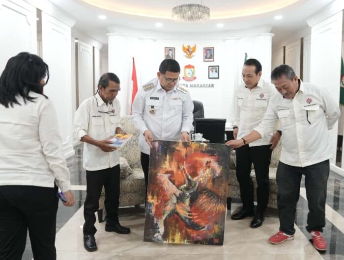 Sumber Foto : Humas Pemkot - Wali Kota Makassar Munafri Arifuddin menerima cenderamata lukisan dari pengurus Dewan Kesenian Makassar (DKM) saat audiensi di Balai Kota Makassar, Rabu (1/10/2025).