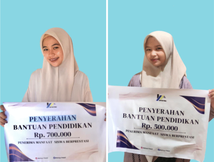 Penerima bantuan masing-masing adalah Sakinah Syarif (MA) dengan nominal Rp700 ribu, dan Indira Chunda R(MTs) sebesar Rp500 ribu.