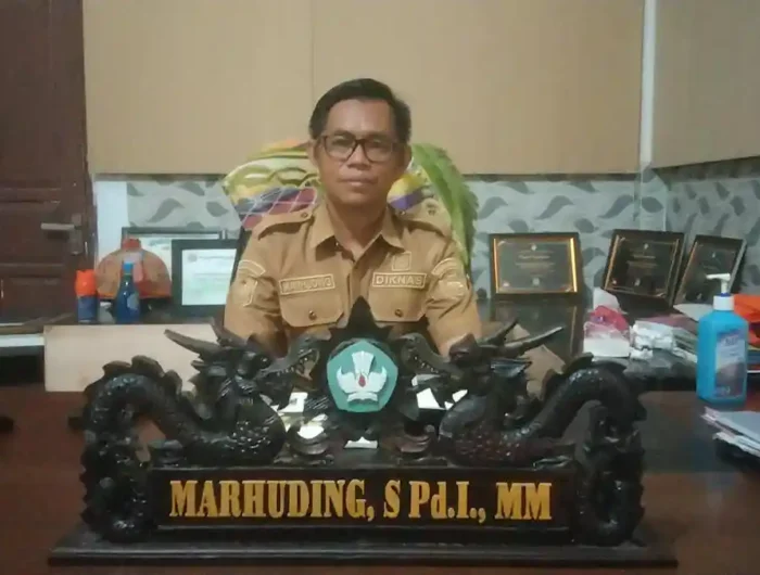 Plt Kepala Dinas Pendidikan dan Kebudayaan Kabupaten Mateng, Marhuding, memberikan keterangan kepada awak media terkait penerapan sistem evaluasi bulanan berjenjang di kantor Disdikbud Mamuju Tengah, Kamis (5/2/2026).