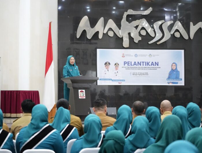 RETAS.News, Makassar — Ketua Tim Penggerak PKK Kota Makassar Melinda Aksa melantik 13 Ketua TP PKK Kecamatan sekaligus mengukuhkan mereka sebagai Bunda PAUD Kecamatan, Jumat (13/2/2026).